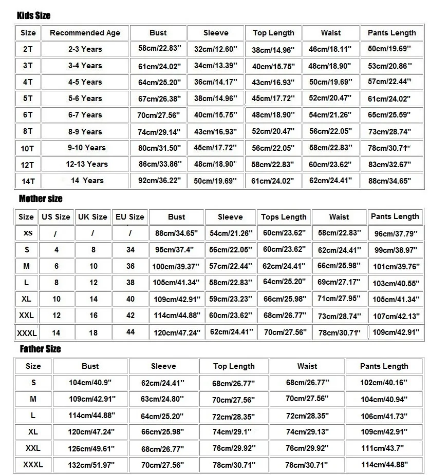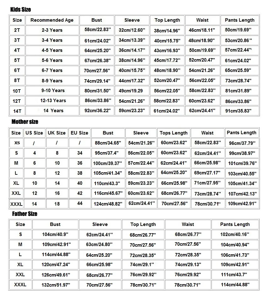 e.g. Kids 7T ,Mother L & Daddy 3XL