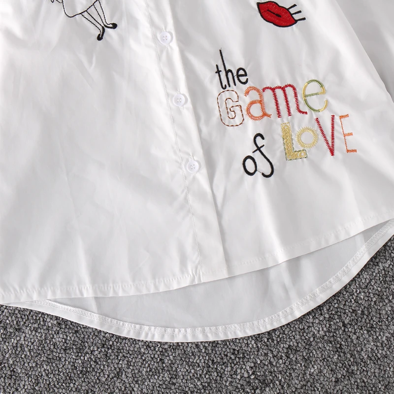Nice shirt! I'm delighted! Delicate, neat embroidery, size itself. Took 160 size per girl 145. She is happy that like an oversize. Rukova is normal, just: not short, and not long. Wide Cuff. Very fast delivery. Thank you so much! Take it, do not doubt it.
