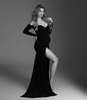 Fully corresponds to the store's photo. Fabric knitwear is heavy, dense, does not shine through! The cutout is not so big, on my photo the fabric had to be raised. My height is 170 cm, the heel is 11 cm and there is still a beautiful train. Highly recommend!!!